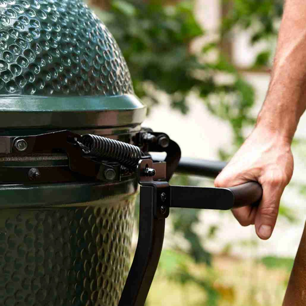 Asa e, aici, la Big Green Egg, facem doi in unu. Cuibul si manerul special sunt o combinatie fantastica. Un cuib puternic si stabil si un instrument util pentru deplasarea in siguranta a EGG-ului datorita rotilor sale mari face totul mai usor. Cuib + maner si toate acestea intr-un design elegant! Frumusetea si utilitatea acestui produs robust dezvaluie imediat ca instrumentul Cuib+Maner este o inventie tipica Big Green Egg. Ingenioasa! O baza realizata din otel acoperit cu maner puternic, pe care sa il folositi pentru a va muta EGG-ul ori de cate ori doriti: la adapost de vant sau chiar temporar, in garaj. Te afli pe o suprafata dura sau neuniforma? Nu este nicio problema pentru cele patru roti, dintre care doua sunt prevazute cu clapete de blocare. In timpul calatoriei, EGG-ul dvs. se afla in siguranta in cuibul sau, iar manerul ramane rece, chiar daca EGG-ul dumneavostra este incins!