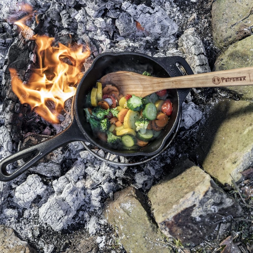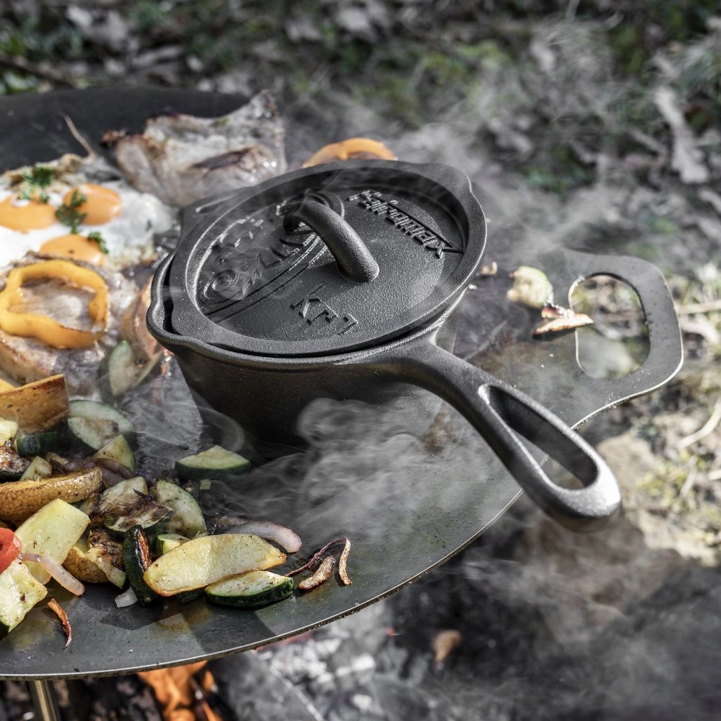 Cu acest vas de gatit din fonta echipat cu maner si capac, veti obtine un gust perfect atat pentru preparate la tigaie, cat si la ceaun. Cratita este suficient de adanca, puteti gati carne sau peste, dar si diverse sosuri sau garnituri. Aburii rezultati in timpul gatirii raman sub capac, pastrand astfel aroma fiecarui fel de mancare. De asemenea, in acest vas de gatit se poate frige sau fierbe, iar datorita dimensiunii si greutatii echilibrate, este extrem de practic pentru calatorii, camping sau excursii.
