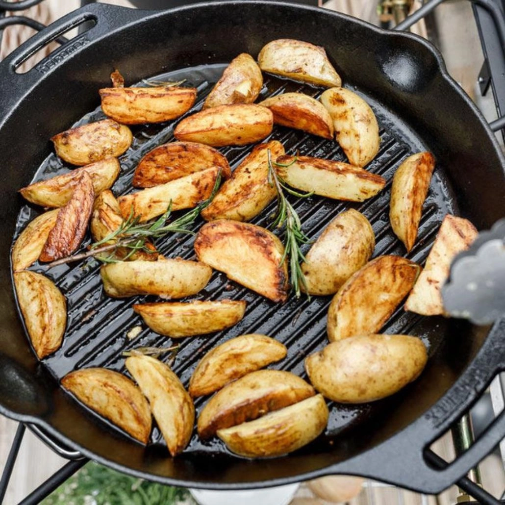 Cu tigaia grill Petromax, cu striatii, puteti obtine rezultate perfecte in prajirea carnii, a pestelui sau a legumelor. Datorita designului sau, aceasta tigaie ofera bucatilor de carne prajita acele dungi distincte, tipice gratarului. Fiind confectionata din fonta, tigaia distribuie uniform caldura si o retine eficient, acest model de tigaie grill fiind ideal pentru utilizare directa deasupra focului deschis, pe aragaz, pe soba sau chiar in aer liber, peste flacara.