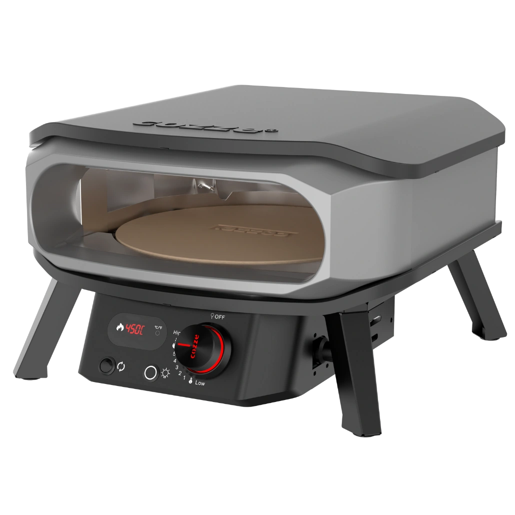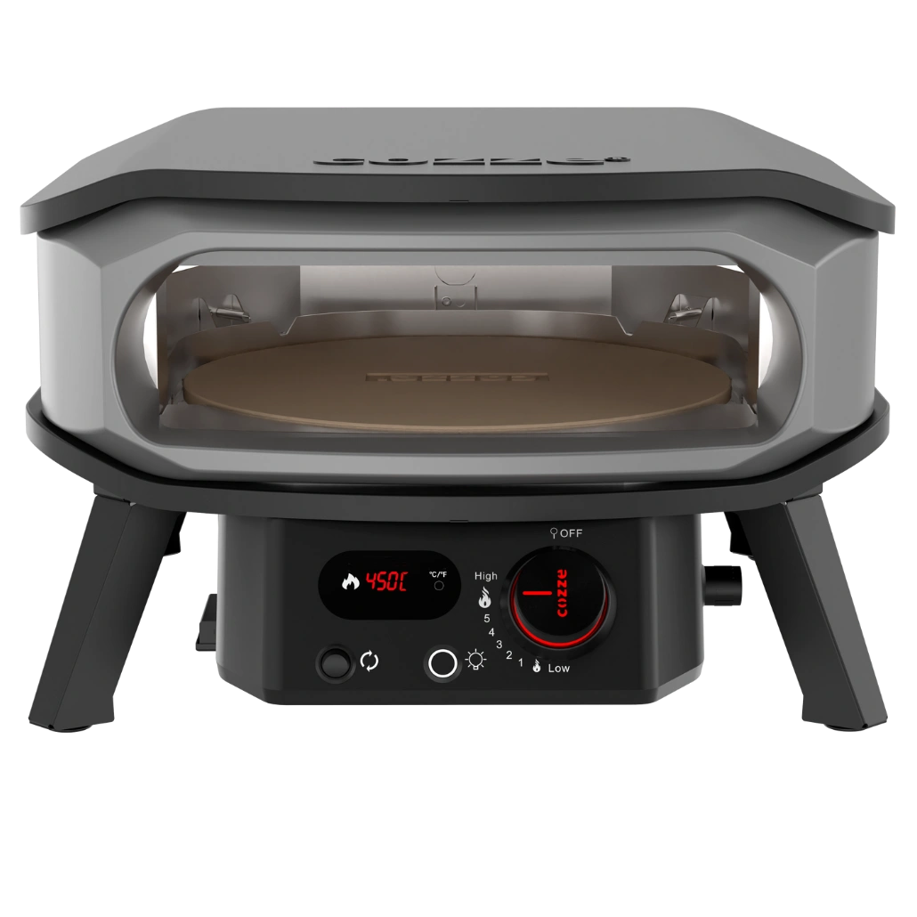 Acest model se monteaza rapid la sursa de gaz, iar prin simpla reglare a butonului rotativ atinge pana la 500 °C in aproximativ 20 de minute. Termometrul integrat faciliteaza controlul in timp real, iar scutul termic inclus ajuta la incalzirea si mentinerea caldurii in interior, pentru a putea coace pizza dupa pizza fara intarzieri.