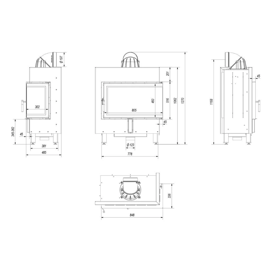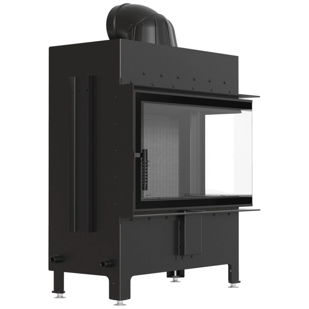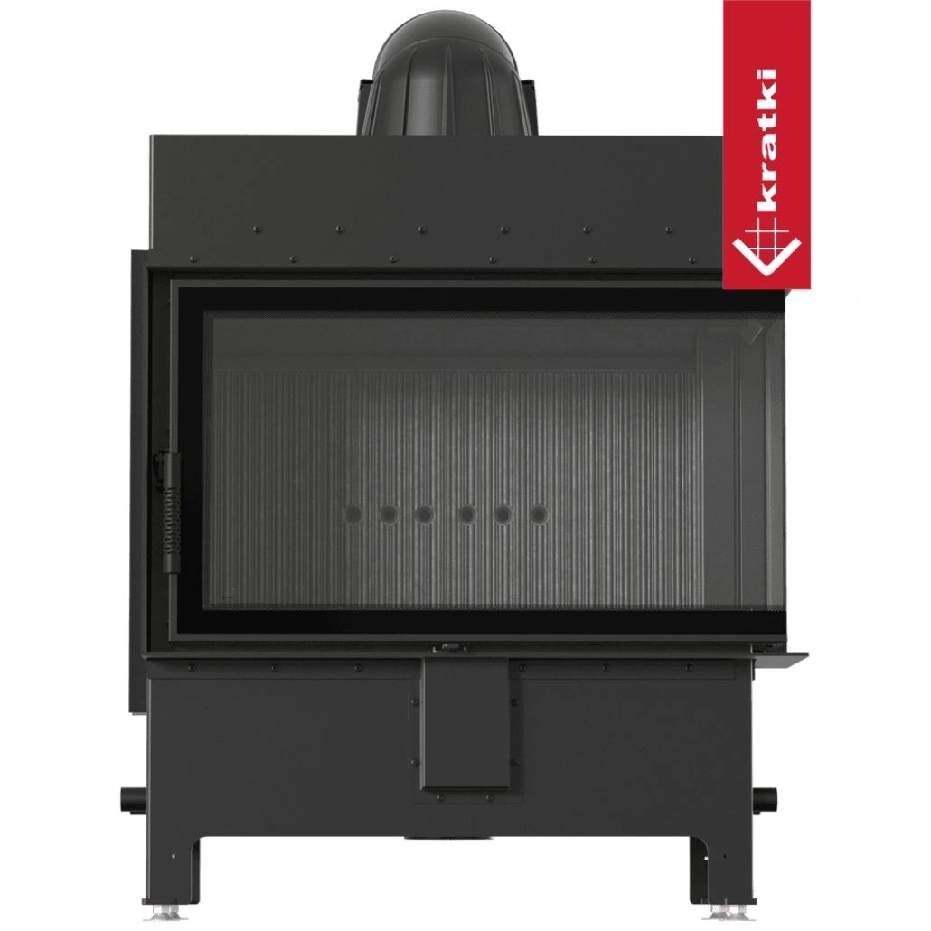 Focar modern din otel, interior captusit cu samota neagra Termotec si sistem de ardere optimizat prin tripla combustie, admisie de aer din exterior si evacuare cu deflector dublu.
