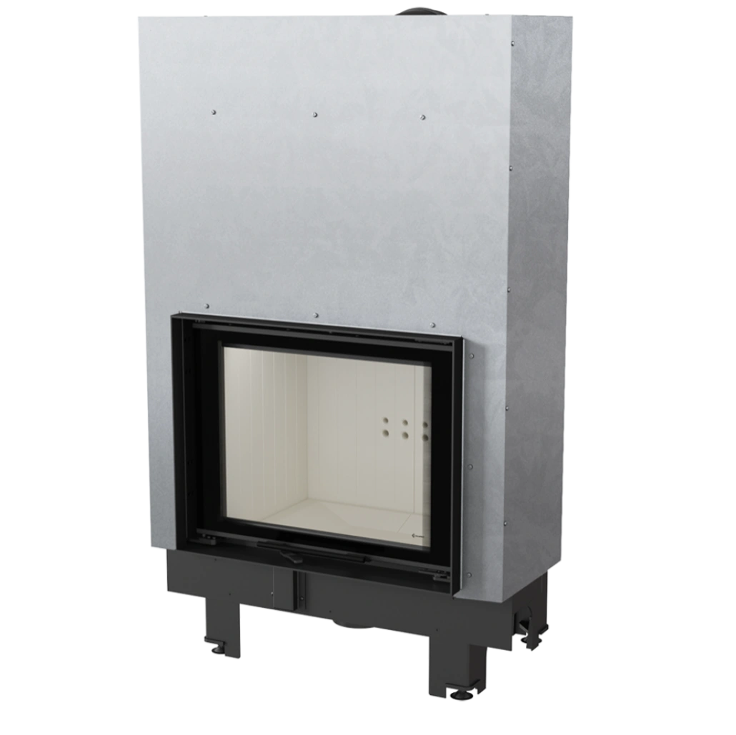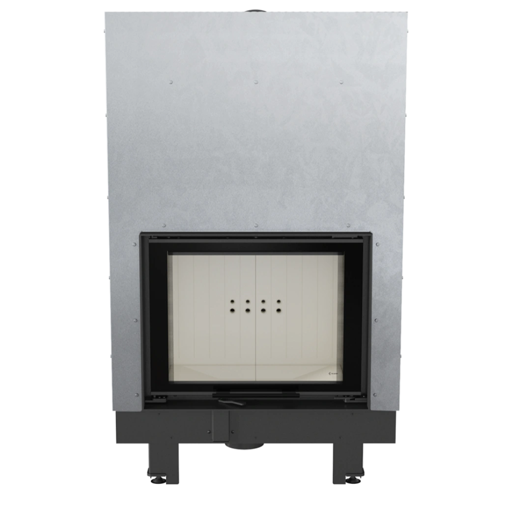 Focarul este prevazut cu deschidere verticala, prin glisarea usii, oferind un plus de confort acestuia. Usa este prevazuta si cu deschidere standard, orizontala, pentru o curatare usoara a sticlei. Focarul este echipat la nivelul conului cu sistem de recuperare a caldurii, compus din tevi orizontale ce preiau din caldura gazelor de evacuare, crescand eficienta acestuia. Datorita samotei din interior si a sistemului de ardere pe vatra, procesul de ardere al lemnului este mai complet, rezultand reziduri de cenusa reduse. Pe conul focarului este amplasata o evacuare reglabila la 360 grade, pentru o racordare facila a acestuia la cosul de fum.
