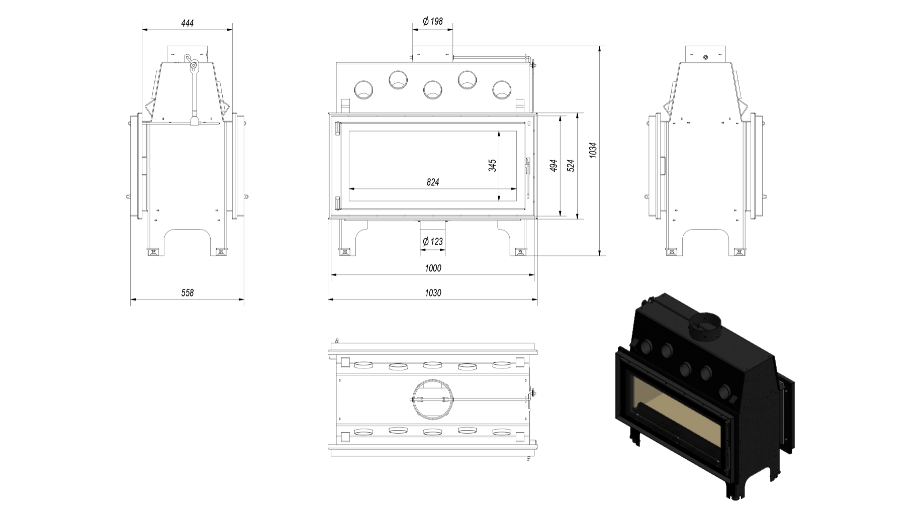 - Prevazut cu tevi, in conul focarului, pentru recuperarea suplimentara a caldurii din gazele de evacuare.