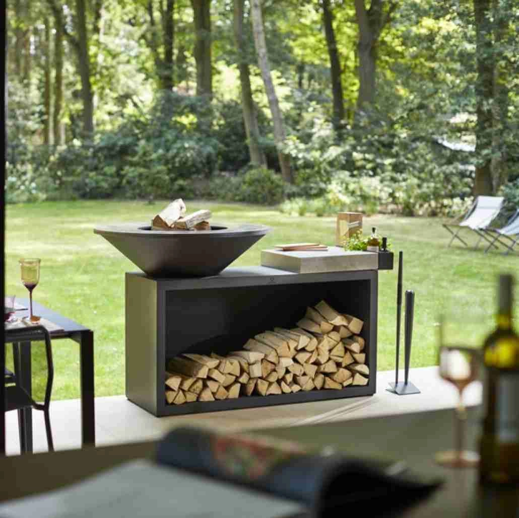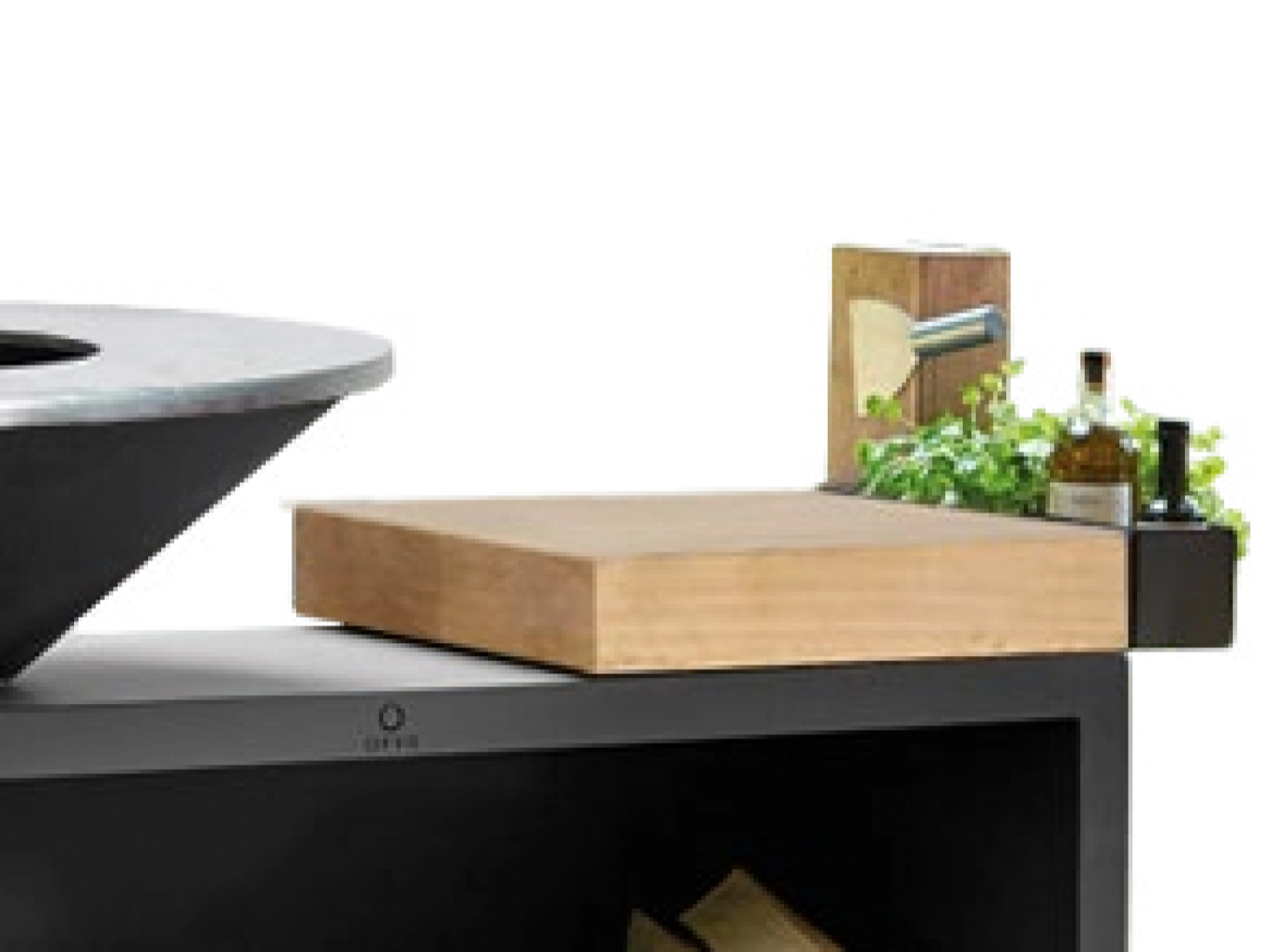 Aceasta unitate de gatit all-in-one combina stilul si functionalitatea imbatabile intr-un design compact de insula. Construit din otel rezistent vopsit negru, include o unitate de gatit OFYR de 85 cm sau 100 cm, cu spatiu depozitare a lemnului, placa din lemn masiv pentru pregatit preparatele si o masa de lucru pentru a avea la indemana ustensilele si condimentele. Insula OFYR este bucataria dumneavoastra completa in aer liber, care va oferi o experienta de neuitat alaturi de prieteni sau familie.
