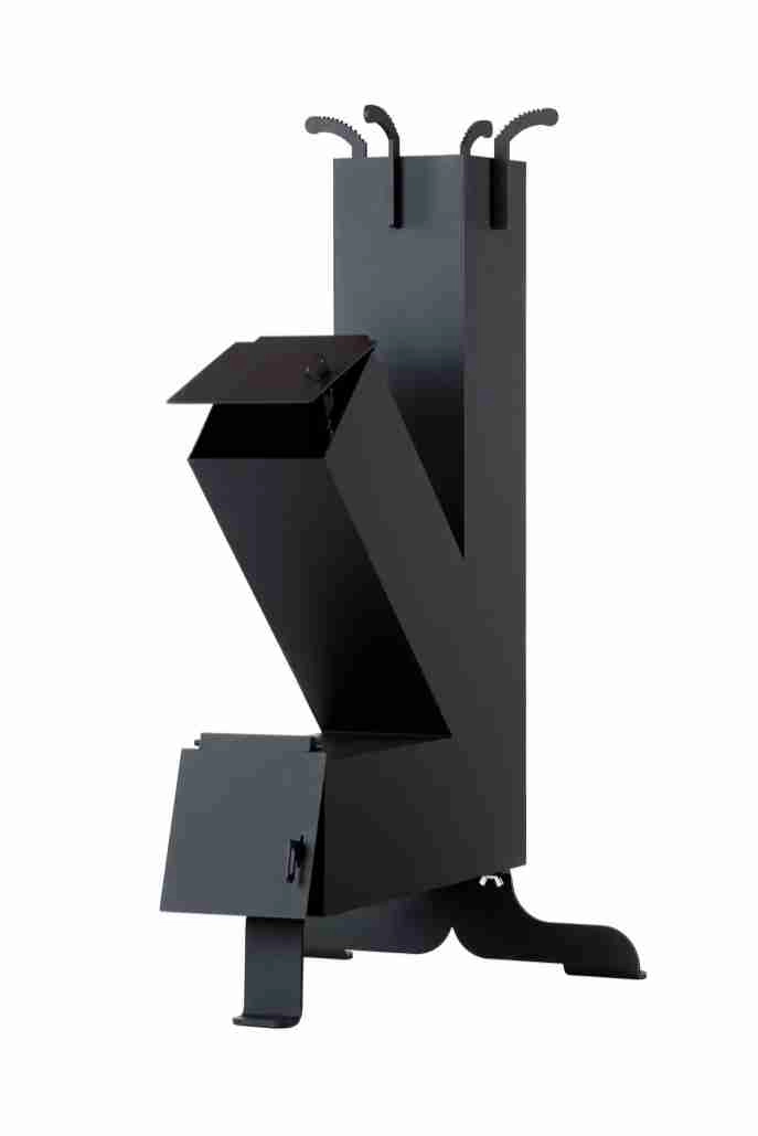 Componente: 2 picioare detasabile, 4 lame de sustinere pentru vasele de gatit, usa reglabila pentru controlul fluxului de aer.