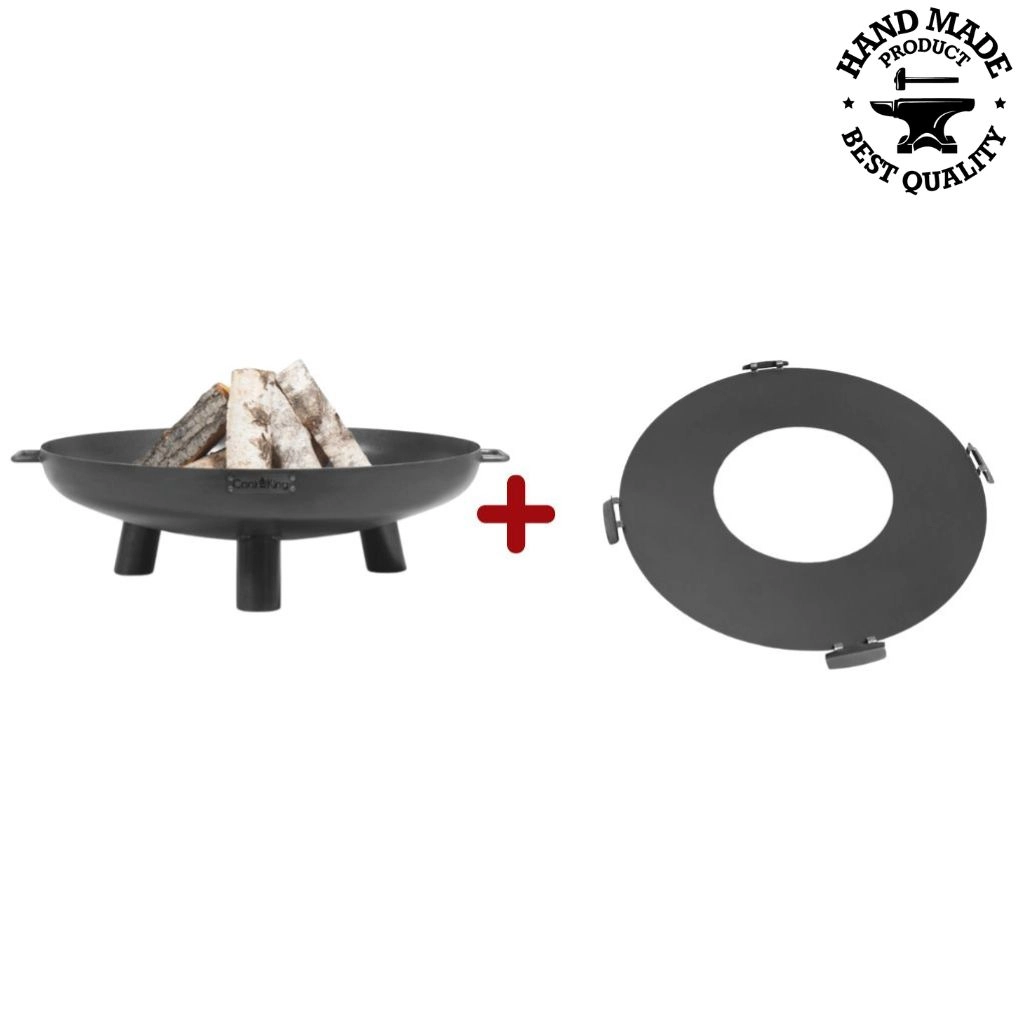 Vatra pentru foc cu plita reprezinta o solutie ideala pentru cei care pun pret pe siguranta la aprinderea focului dar si pentru gatirea alimentelor preferate, in aer liber. Este portabila si poate fi folosita in mai multe moduri: ca loc practic pentru aprinderea focului, gratar portabil, sursa de caldura si iluminare eleganta. Structura este foarte stabila si solida, elementele fiind sudate intre ele, rezultand un produs incredibil de stabil. Forma cuvei previne raspandirea lemnului in caz de vant puternic. Manerul sudat faciliteaza transportul.