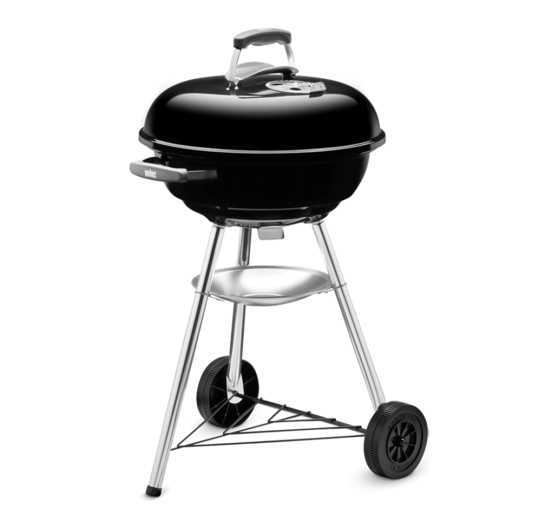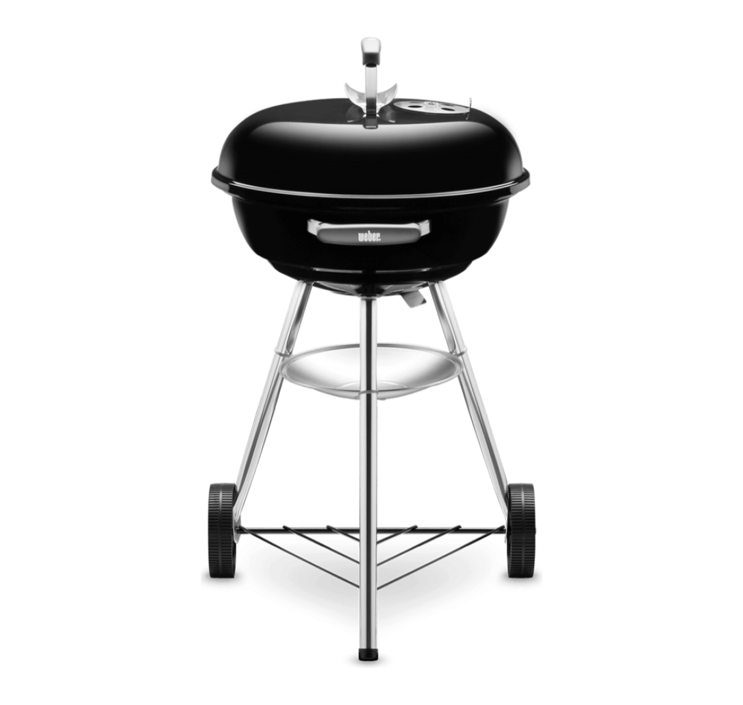 Gratarul pe carbuni, Compact Kettle 47 cm este conceput pentru terasa sau curte si este usor de montat si transportat, datorita suportului tip trepied cu roti, din dotare. Gratarul vine accesorizat si cu bol de masurare a brichetelor sau carbunilor, ce ajuta la controlarea consumului de combustibil. Acesta este echipat cu sistem de tiraj lateral, pentru un control cat mai bun al arderii si al temperaturii.