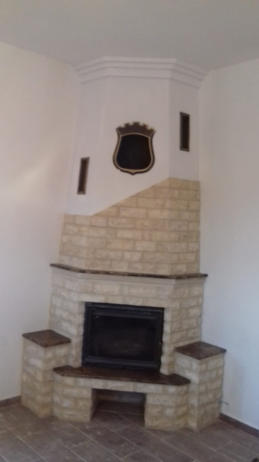 REMDAR.RO Semineu Rustic pe colt cu focar din fonta de 16KW
