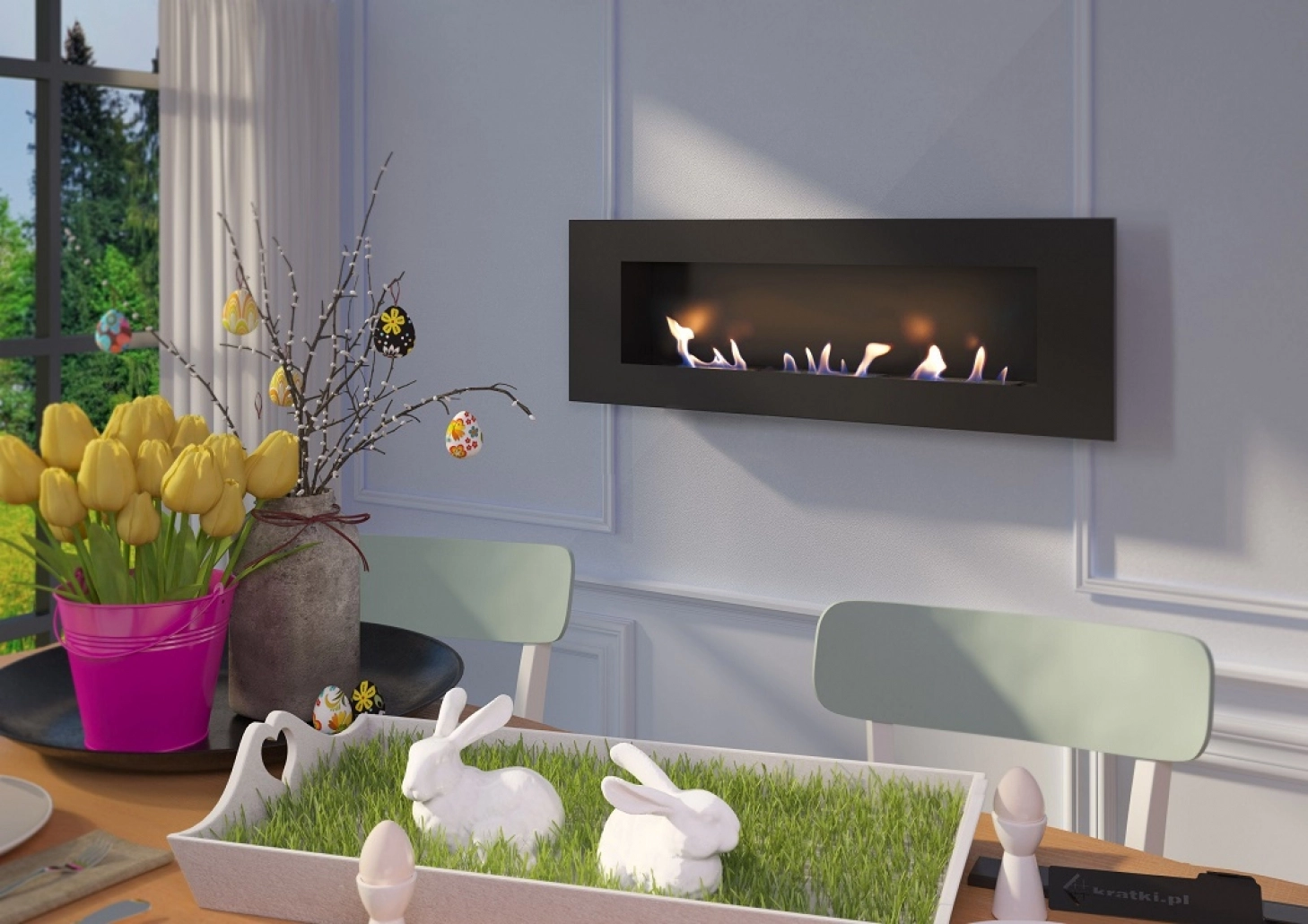 Nu necesita cos de fum. Nu emana fum si miros. Foc adevarat. Usor de intretinut. Model aplicabil cat si incastrabil.