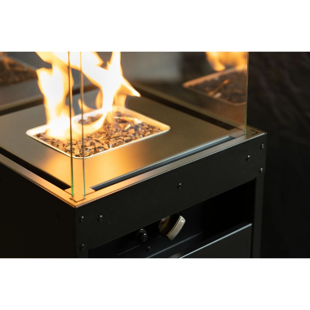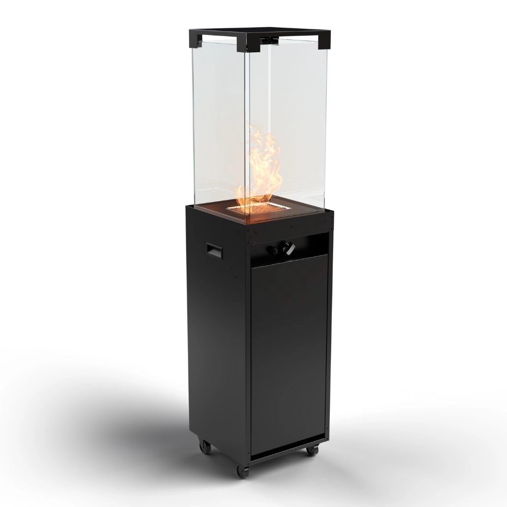 Faro este un incalzitor de terasa cu gaz extrem de eficient, cu un design elegant si practic. Fabricat din otel negru acoperit cu pulbere, este complet portabil datorita celor 4 role. Dispune de un compartiment integrat pentru o butelie de gaz de 11 kg si ofera o caldura placuta si uniforma pentru o ambianta confortabila pe terasa sau in gradina. Este sigur in utilizare, avand protectii impotriva accesului neautorizat si oprire automata in caz de rasturnare.