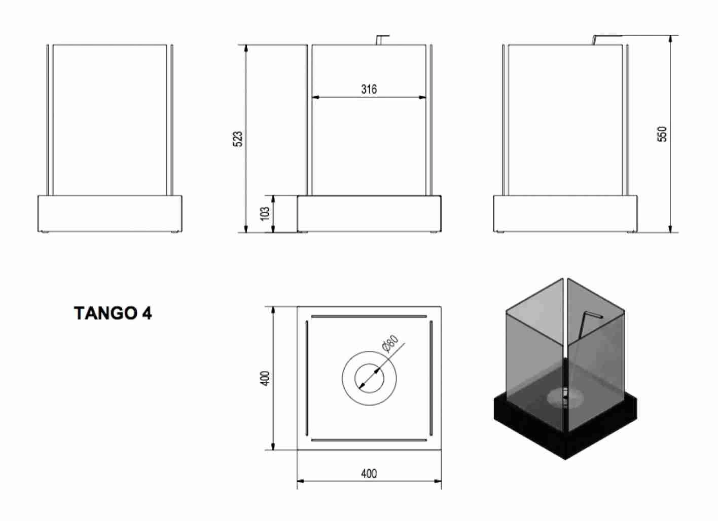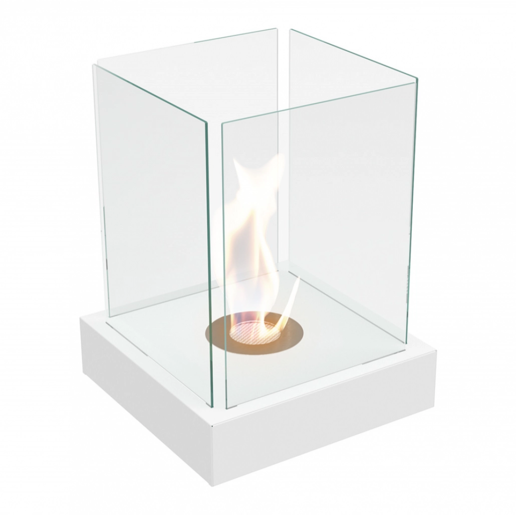 Biosemineu Tango 4 Alb, cu pereti inalti din sticla care protejeaza copiii si animalele de flacara directa. Este potrivit atat pentru spatii comerciale precutm restaurante, hoteluri cat si pentru locuinte sau spatii exterioare in caz de vreme adecvata.
