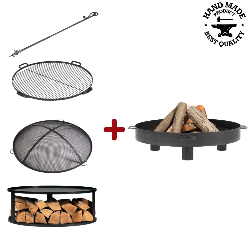 Vatra de foc este construita cu o structura stabila si solida, cu toate elementele sudate pentru o stabilitate maxima. Aceasta reprezinta o solutie ideala pentru cei care pun accent pe siguranta in timpul aprinderii focului. Vatra este portabila si are multiple utilizari: poate fi folosita ca loc pentru foc, gratar, sursa de caldura si iluminare. Forma cuvei previne raspandirea lemnului in caz de vant puternic. Manerul sudat faciliteaza transportul. In plus, vatra vine impreuna cu o baza cu suport pentru lemne, gratar din otel, capac anti scantei si carlig pentru foc, oferind o solutie completa si convenabila pentru experienta ta in aer liber.