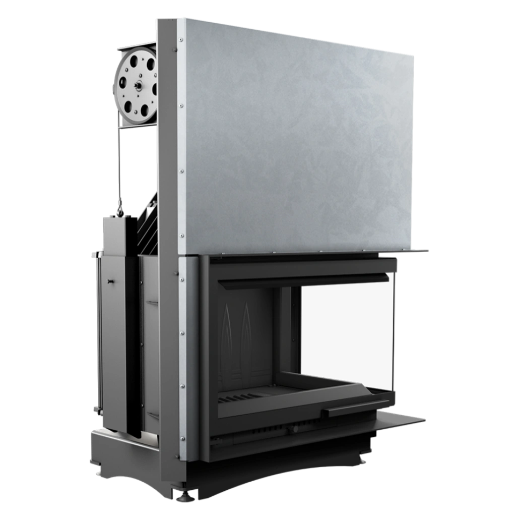 Focarul este prevazut cu deschidere verticala, prin glisarea usii, oferind un plus de confort acestuia. Usa este prevazuta si cu deschidere standard, orizontala, pentru o curatare usoara a sticlei. Acest focar dispune de un con inalt si de lamele radiante pe toti peretii acestuia, pentru a creste eficienta focarului prin marirea suprafetei de contact cu aerul.