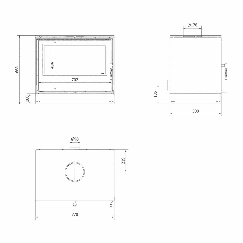 Material:Otel refractar de inalta calitate cu o compozitie ridicata de carbon pentru o rezistenta ridicata la temperaturi inalte , Captusala interioara TERMOTEC, material ce acumuleaza si ridica temperatura in interiorul focarului pentru o ardere mai eficienta , Sticla decorativa grafitata (contur negru) care ofera un aspect modern si elegant