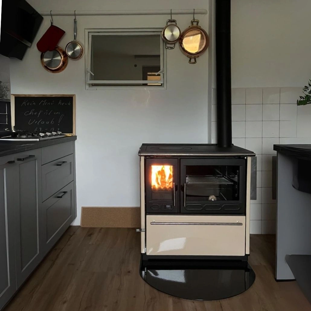 Soba de gatit 8kW este ideala pentru utilizarea in gospodarii care necesita atat incalzire autonoma, cat si o solutie practica pentru prepararea alimentelor. Este potrivita pentru bucatarii traditionale, cabane, case de vacanta sau locuinte permanente unde se doreste un mod eficient si natural de gatit. Functioneaza exclusiv cu lemn uscat si necesita amplasare intr-un spatiu bine ventilat, cu respectarea distantelor de siguranta fata de elemente inflamabile. Se recomanda instalarea de catre personal autorizat si conectarea la un cos de fum compatibil. Suprafata superioara poate fi folosita ca plita pentru gatit direct, iar cuptorul incorporat este perfect pentru coacere lenta sau incalzirea alimentelor.