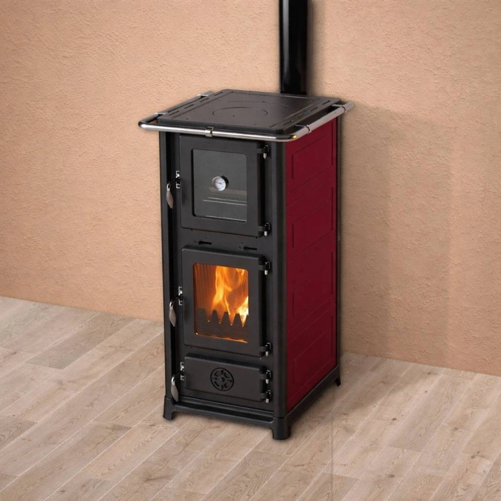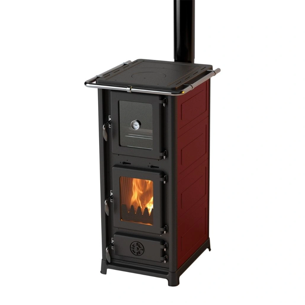 Soba pe lemne OLYMPIA II Rosu inchis este o solutie practica pentru interior, cu plita si cuptor integrate, potrivita pentru gatit sau prepararea usoara a alimentelor.