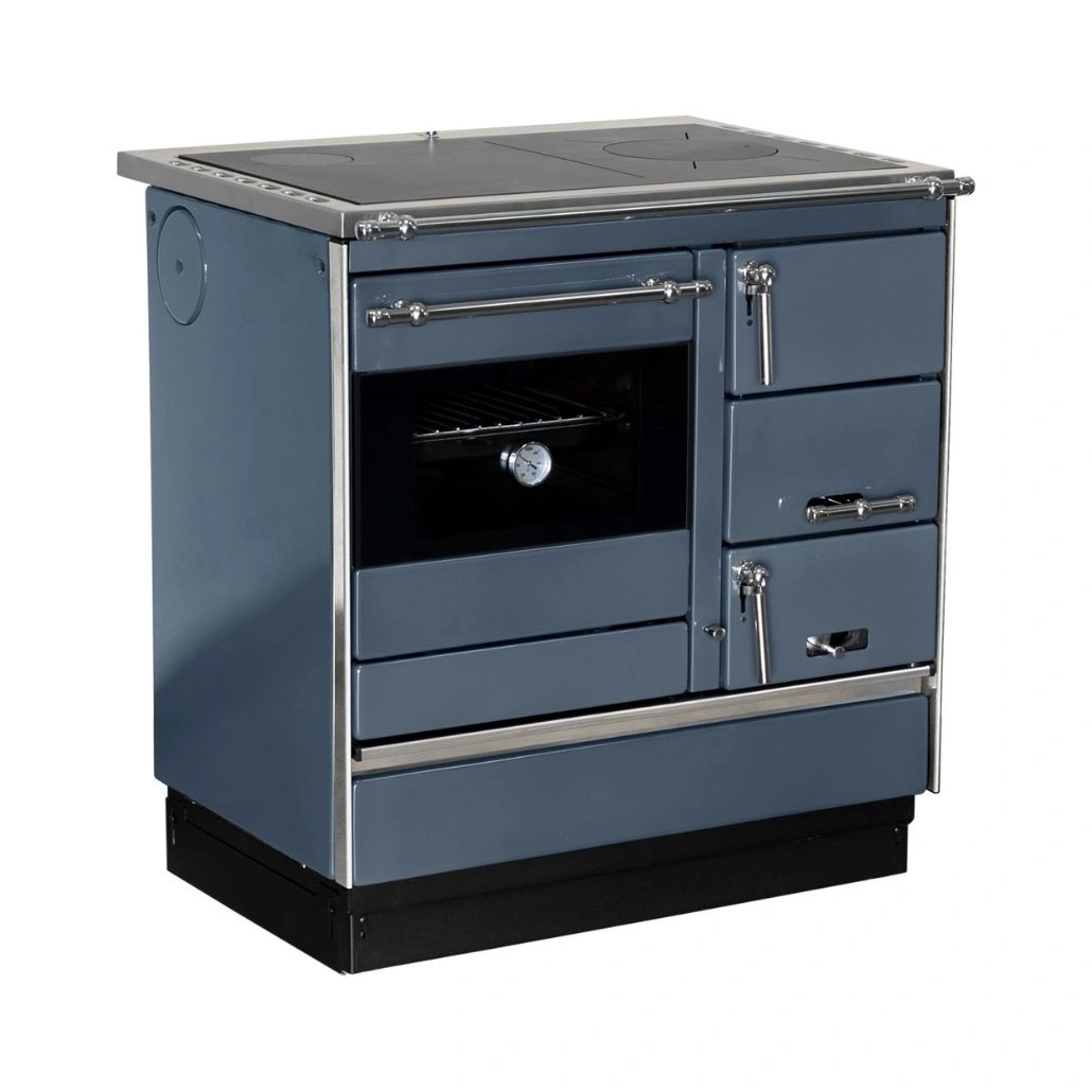 Soba de gatit pe lemne KING L Antracit este potrivita pentru utilizare zilnica in locuinte unde se doreste gatit pe lemne, coacere si incalzirea spatiului. Poate fi folosita pentru prepararea diferitelor tipuri de mancare si pentru completarea confortului termic, iar posibilitatea de montaj al cosului de fum pe stanga, dreapta, central sau in spate permite adaptarea mai usoara la configuratia bucatariei.