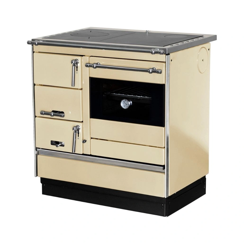 Soba de gatit pe lemne KING R Crem este potrivita pentru utilizare zilnica in locuinte unde se doreste gatit pe lemne, coacere si incalzirea spatiului. Poate fi folosita pentru prepararea diferitelor tipuri de mancare si pentru completarea confortului termic, iar posibilitatea de montaj al cosului de fum pe dreapta, stanga, central sau in spate permite adaptarea mai usoara la configuratia bucatariei.