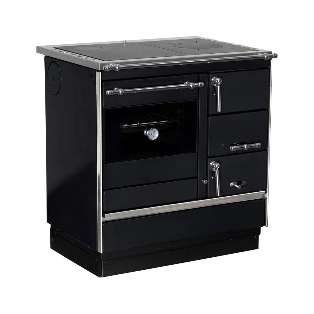 Soba de gatit pe lemne KING L Negru este potrivita pentru utilizare zilnica in locuinte unde se doreste gatit pe lemne, coacere si incalzirea spatiului. Poate fi folosita pentru prepararea diferitelor tipuri de mancare si pentru completarea confortului termic, iar posibilitatea de montaj al cosului de fum pe stanga, dreapta, central sau in spate permite adaptarea mai usoara la configuratia bucatariei.