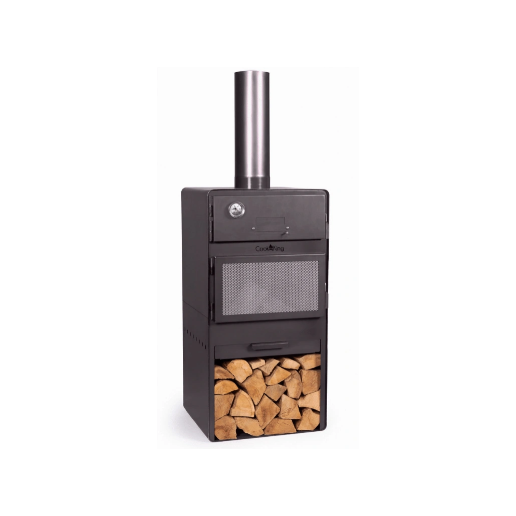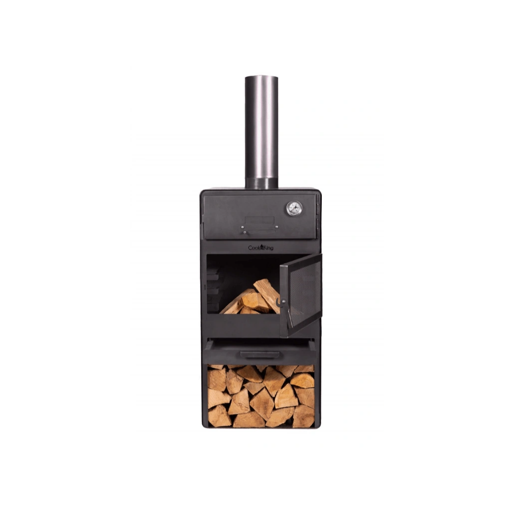 Soba de lemn VENTO luminează fiecare moment al adunărilor de seară în grădină. Datorită structurii masive realizate dintr-o placă groasă de metal, soba se încălzește rapid la o temperatură ridicată și, în același timp, emană căldură în jurul său, astfel încât oricine se poate încălzi lângă sobă. Toate elementele au fost sudate împreună pentru a crea un produs incredibil de solid. Ușa deschisă, prevăzută cu o plasă, previne scăparea scântei din interiorul cuptorului și permite o vedere clară a flăcărilor. Cuptorul plasat în camera superioară permite coacerea. Datorită orificiului de observație instalat în ușile cuptorului, puteți urmări procesul de coacere, în timp ce termometrul incorporat permite controlul temperaturii de coacere. Interiorul cuptorului este căptușit cu cărămizi de șamotă, potrivite nu doar pentru coacerea pâinii sau a pizzei, ci și pentru o varietate de feluri de mâncare diferite, cum ar fi: pește, carne la cuptor, plăcintă sau legume. Mâncărurile coapte în cuptorul pe lemne absorb mirosul lemnului ars, ceea ce îmbogățește gustul și aroma lor. Este o modalitate naturală și sănătoasă de pregătire a mâncărurilor. Soba de lemn este echipată cu un coș de fum, care permite evacuarea fumului produs de arderea lemnului. De asemenea, are un raft care poate conține o cantitate mare de lemn. În plus, raftul inferior protejează podeaua de temperaturi ridicate atunci când soba este utilizată. În interiorul sobei au fost instalate 3 nivele pentru grătare sau tigăi, ceea ce simplifică controlul temperaturii mâncărurilor pregătite. Un avantaj suplimentar al sobei este tava de cenușă detașabilă, care ușurează curățarea cuptorului de cenușă și resturi de lemn ars.