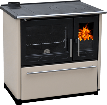 Soba cu plită Glas 850, din fontă, este preferată în special de iubitorii de bucătării rustice. Usa de alimentare cu lemn, prevăzută cu sticlă termorezistentă, oferă vizibilitate asupra focului, creând un efect de șemineu. De asemenea, usa cuptorului este dotată cu sticlă termorezistentă și termometru, permițând monitorizarea constantă a procesului de gătire.