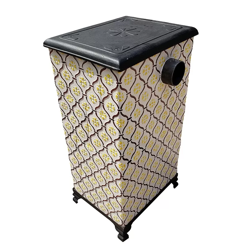 Pentru cel mai bun randament oferit clientilor nostri, soba beneficiaza de „fumuri” construite in interior din caramida de samota. In plus, piesele de teracota au in compozitie trei tipuri de argila care permit eliberarea treptata a caldurii. Astfel, caldura degajata ar trebui sa se mentina pana a 2-a zi dimineata.