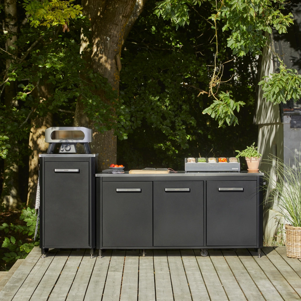 Amplasati dulapul in zona bucatariei exterioare pe o suprafata plana si asigurati-va ca rotile sunt blocate cu ajutorul franei de siguranta.