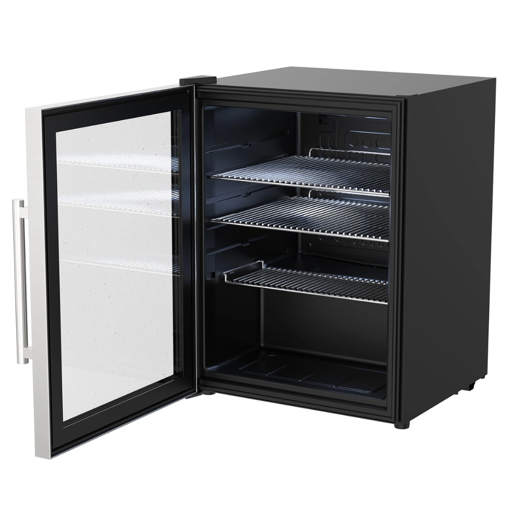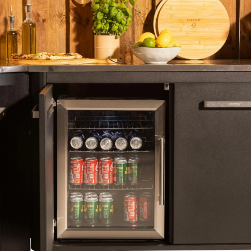 Frigiderul Cozze de 60 litri este solutia ideala pentru orice bucatarie exterior, integrandu-se armonios in orice configuratie de mobila bucatarie exterioara. Este dotat cu o fateta din sticla de inalta calitate, cu vizibilitate clara asupra continutului, fiind perfect pentru depozitarea bauturilor racoritoare si a ingredientelor.