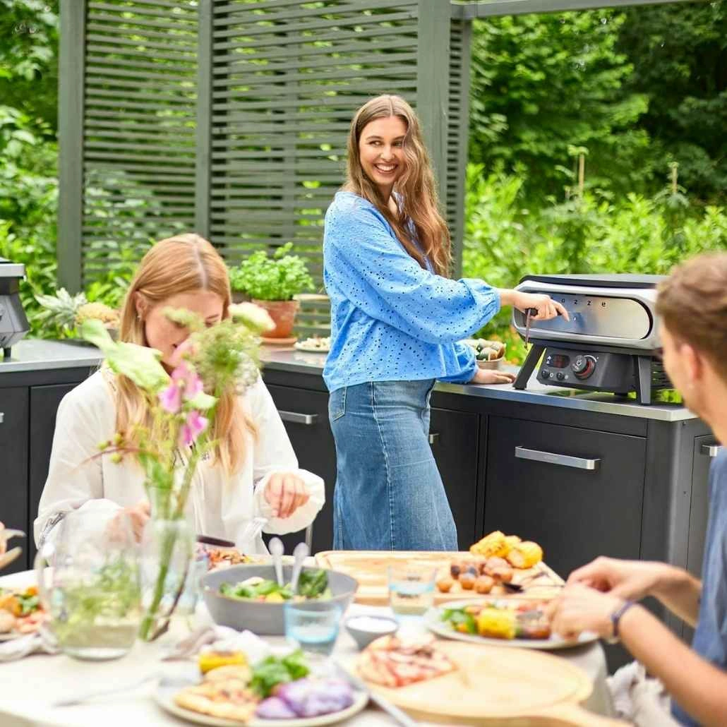 Inainte de coacere, conecteaza cuptorul la priza si lasa-l sa se preincalzeasca timp de aproximativ 25 de minute. Pentru a spori eficienta, foloseste scutul termic din inox inclus, care ajuta la mentinerea caldurii in interior, reducand pierderile prin deschiderea frontala. Atentie: scutul este recomandat doar in faza de incalzire si intre coaceri, deoarece temperatura din interior poate deveni foarte ridicata. Pozitioneaza bucataria exterioara pe o suprafata stabila si aseaza cuptorul impreuna cu accesoriile pe blatul din inox pentru acces rapid si organizare eficienta. Daca ai nevoie de mai mult spatiu, poti adauga module suplimentare din gama Cozze, extinzand masa de 90 cm intr-o suprafata de lucru practica, durabila si usor de intretinut, perfecta pentru gatit in aer liber.