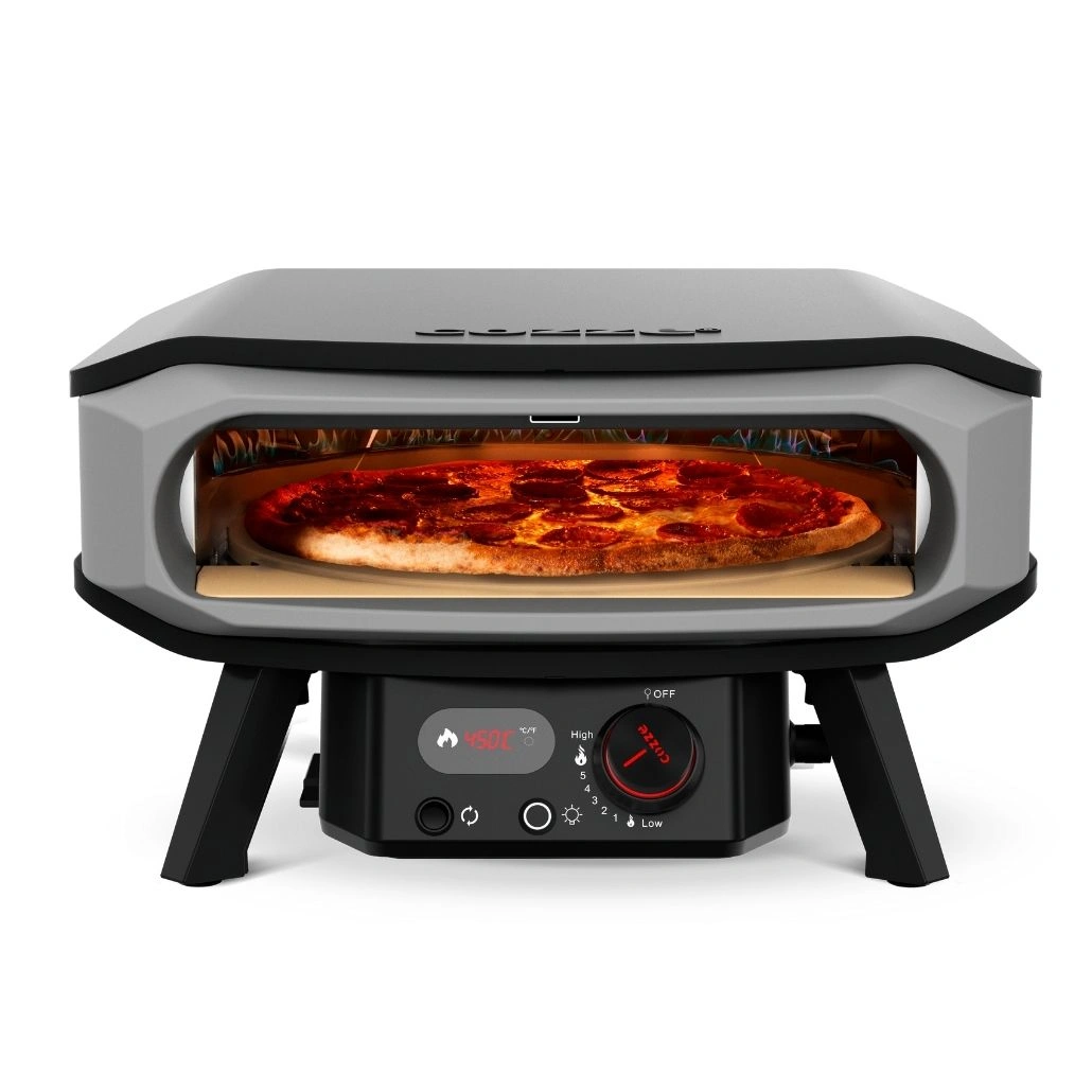 Monteaza bucataria exterioara pe o suprafata stabila si asigura-te ca ai suficient spatiu in jur pentru gatit in siguranta. Conecteaza cuptorul pe gaz Cozze 42.5 cm la sursa de gaz si regleaza butonul rotativ pentru a porni arzatorul. In aproximativ 20 de minute, cuptorul atinge 500 °C, fiind pregatit pentru coacerea pizzei. Urmareste temperatura cu ajutorul termometrului digital integrat si profita de scutul termic pentru mentinerea caldurii optime, astfel incat sa poti coace mai multe pizze succesiv, fara pauze. Plaseaza accesoriile necesare pe masa din inox de 90 cm pentru a le avea mereu la indemana, iar daca ai nevoie de mai mult spatiu, poti adauga module suplimentare Cozze pentru a extinde zona de lucru.