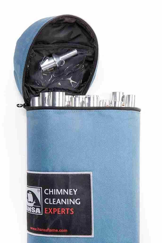 Trusa pentru curatarea traseelor de fum, a cosurilor de fum si a tubulaturilor de ventilatie. Sistemul cu perie rotativa functioneaza prin conectarea tijelor la orice masina de gaurit (insurubat) electrica. Cosurile de fum de orice inaltime pot fi curatate cu usurinta de jos (prin usita de vizitare a cosului de fum). Folosind sistemul rotativ de curatare va fi mult mai usor sa cureti orice cos de fum sau trasee de fum si de ventilatie.